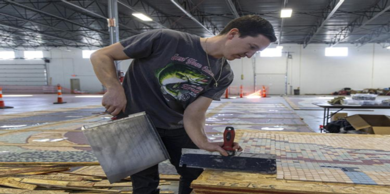 Luke Holle is the tile setter for the Pershing mural project.